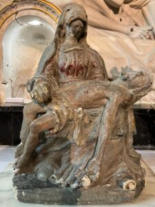 Le côté nord de la chapelle royale est occupé par une chapelle qui porte le nom du grand ministre de Louis XIII. Richelieu, guéri d’une maladie, la fit édifier à ses frais dans les années 1634-35, en remerciement à Notre Dame ; le maître d’œuvre Jean Barbet, un architecte parisien, l’a accolée à la chapelle gothique du XVIe siècle. Si son volume est demeuré identique jusqu’à nos jours, elle a été en grande partie reconstruite au XIXe siècle car des dégâts des eaux dus à l’éclatement des canalisations souterraines qui conduisaient les eaux de la source à la fontaine (visible à l’extérieur) avaient ruinés une partie des maçonneries. Reconstruite « à l’identique » par l’architecte de Saumur Charles Joly-Leterme, inaugurée en 1855, elle présente un retable de la même période évoquant la déposition de Jésus-Christ ; cet ensemble néo-baroque surmonte un autel garni d’un bas-relief en marbre des Pyrénées – la mise au tombeau – au dessus duquel se trouve une cavité abritant la pietà. Celle-ci, en calcaire dur polychrome, reste d’une taille modeste et souffre de quelque déséquilibre dû à l’assemblage entre des morceaux de la pietà de 1454 recueillis après la tourmente révolutionnaire et ceux d’une autre statue. Cette pietà est rendue moins visibles par la grille en métal doré – le seul élément subsistant de ce que Richelieu offrit.