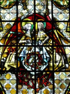 Naturellement, les baies vitrées antérieures volèrent en éclat en 1940 ; y furent substitués une série de vitraux colorés dus à Max Ingrand et son atelier, le maître-verrier majeur de la période de la Reconstruction.